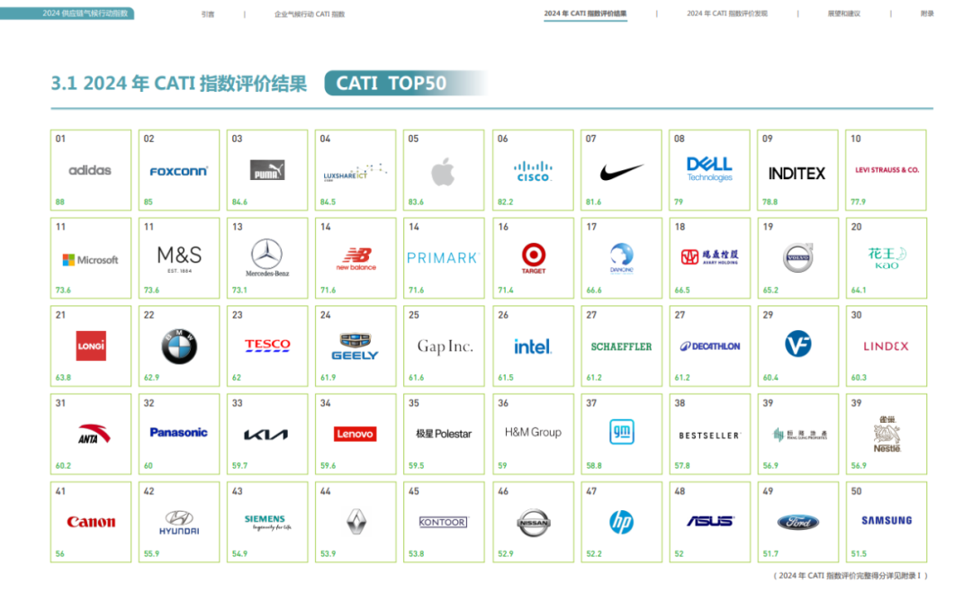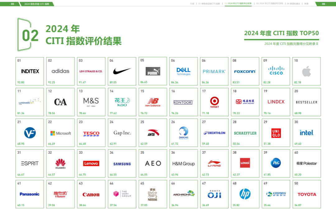2024年,IPE全面升級(jí)CITI指數(shù)和CATI指數(shù)。升級(jí)后的CITI指數(shù)重點(diǎn)關(guān)注供應(yīng)鏈合作,從管理機(jī)制、合規(guī)與整改、資源消耗與污染物排放、能源使用與應(yīng)對(duì)氣候變化、利益方綠色選擇五個(gè)維度對(duì)企業(yè)的綠色供應(yīng)鏈管理開展量化評(píng)價(jià);CATI指數(shù)重點(diǎn)完善產(chǎn)品碳足跡披露和價(jià)值鏈減排相關(guān)指標(biāo),從治理機(jī)制、測(cè)算披露、碳目標(biāo)設(shè)定、碳目標(biāo)績(jī)效和減排行動(dòng)五個(gè)維度對(duì)企業(yè)在氣候治理方面的行動(dòng)開展動(dòng)態(tài)評(píng)價(jià)。