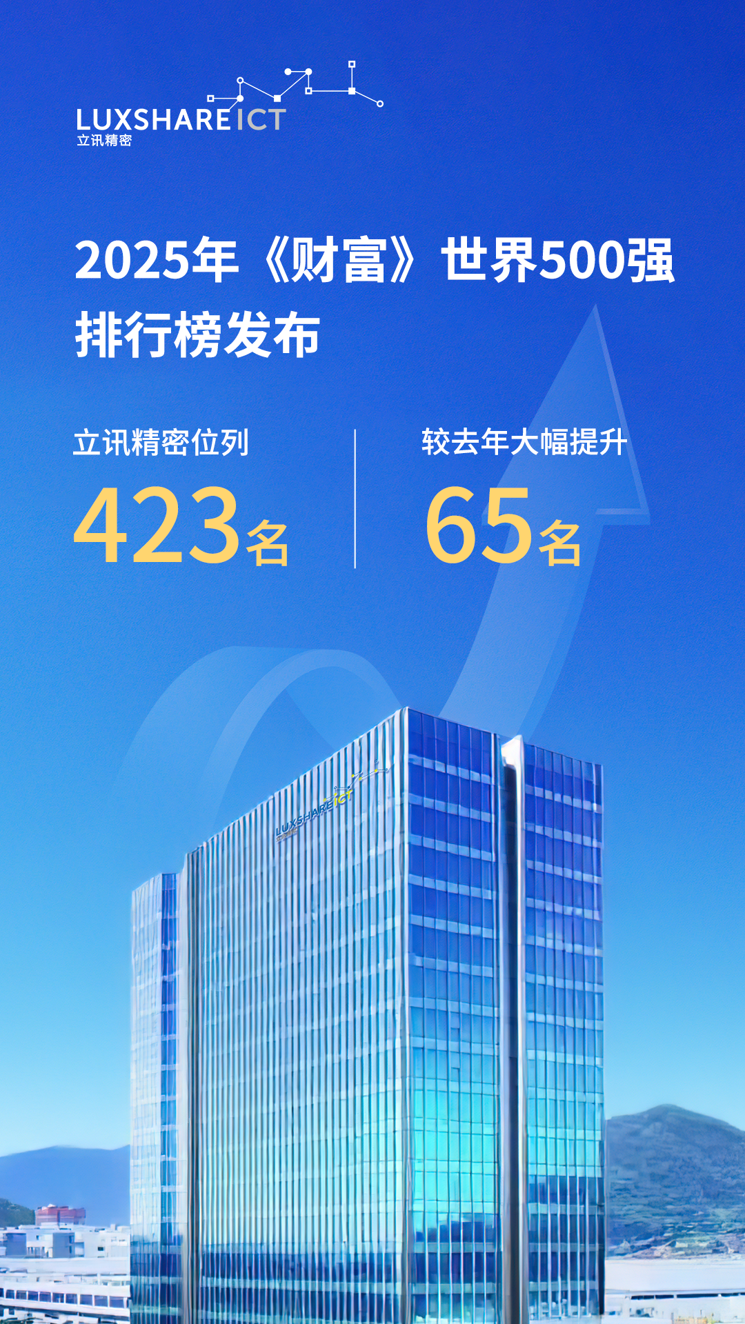 北京時(shí)間7月29日,2025年度《財(cái)富》世界500強(qiáng)排行榜正式發(fā)布,立訊精密(股票代碼:002475)位列第423名,較去年大幅提升了65名,取得入選以來最高排名。作為衡量全球大型企業(yè)體量的權(quán)威標(biāo)準(zhǔn),《財(cái)富》世界500強(qiáng)榜單也反映了全球產(chǎn)業(yè)格局的最新動(dòng)態(tài)。