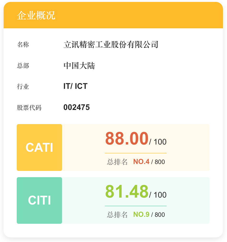 2025年11月6日,公眾環(huán)境研究中心(IPE)在北京舉辦2025年綠色供應(yīng)鏈暨企業(yè)氣候行動論壇。立訊精密獲邀參會,會上發(fā)布了綠色供應(yīng)鏈指數(shù)(CITI)和企業(yè)氣候行動指數(shù)(CATI)評價結(jié)果。本次評價覆蓋23個行業(yè)的800家中外企業(yè),立訊精密CITI及CATI指數(shù)排名均闖入行業(yè)前三,總排名雙雙邁進(jìn)前10,表現(xiàn)領(lǐng)跑大中華區(qū)。